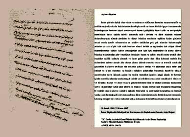 Cumhurbaşkanlığı Devlet Arşivleri’ne bağlı Osmanlı Arşivi’nde tespit edilen bir belgede, Osmanlı Devleti’nin 25 Kasım 1867’de İzmir’de bir belediye dairesi kurulmasına izin verdiği anlaşılmaktadır.